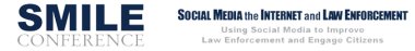 Adoption of social media by law enforcement is in a stage of exponential growth. Some law enforcement agencies have already experienced tremendous successes; while others are ready but don’t know how to get started. The Social Media the Internet and Law Enforcement (SMILE) conference will arm you with the technical hands-on skills and the practical knowledge to navigate the social media world with confidence.