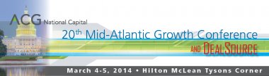 ACG National Capital serves the US's fourth largest economy including Washington, DC, northern Virginia and southern Maryland. It is a leading authority on corporate growth in the mid-Atlantic region. ACG National Capital provides unparalleled opportunities for networking, deal making and professional development for individuals involved in building corporate value through M&A, strategic partnerships, organic growth and capital funding.