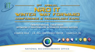 The National Reconnaissance Office (NRO) Chief Information Office (CIO) will be hosting the 3rd Annual NRO Information Technology (IT) Winter Way Forward (WWF) Conference on Tuesday, March 4, 2014. This year, the NRO IT WWF is planned in coordination with the annual NRO IT Technology Expo. The WWF Conference will be held in the J.D. Hill Auditorium with IT Technology Expo industry exhibits running concurrently in the J.D. Hill Atrium and J.D. Hill breakout rooms.