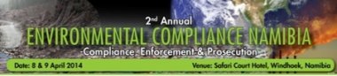 In light of the above, the 3rd Annual Environmental Compliance Namibia is scheduled to take place on 8 & 9 April 2015, Safari Court Hotel, Windhoek, Namibia. The 2015 conference aims to reiterate the importance of collaboration between the private sector, Ministry of Environment & Tourism and related ministries with the aim of environmental compliance.