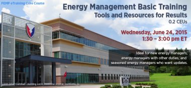 The U.S. Department of Energy Federal Energy Management Program (FEMP) will present a live eTraining course on June 24, 2015 from 1:30 pm to 3:00 pm EST on Energy Management Basic Training- Tools and Resources for Results.