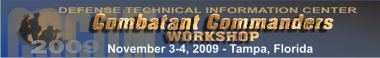 The Defense Technical Information Center (DTIC) will be hosting the 2009 Combatant Commanders Workshop. Themed, "Real-Time S&T Support for Real-World Issues," the Workshop will highlight DTIC's ability to support the Combatant Commands by providing scientific data, technical research, and engineering information through DTIC resources such as DTIC Online, DoDTechipedia and Information Analysis Centers (IACs). The workshop will include guest speakers from the Department of Defense (DoD), Combatant Commands, DTIC and IACs. The event will also provide an opportunity to network, share knowledge and collaborate with colleagues and peers.
