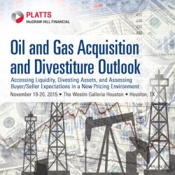 Platts Oil & Gas Acquisition & Divesture Outlook, November 19-20, 2015 in Houston, TX will examine the near to mid-term future for oil and natural gas prices, debt to equity ratios, liquidity and borrowing capacity, hedging strategies, reserve and asset values that will determine who wins and who doesn't in the US oil and gas sector.