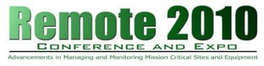 Remote 2010 Conference and Expo will focus on the leading advancements for the monitoring and management of distributed equipment and facilities, remote assets, infrastructure, automated process & system controls and device networks. Large-scale users and industry experts will speak on SCADA, remote networking technology, security (cyber and physical), control, automation, onsite and back-up power, M2M, emerging wireless technology, telemetry and condition monitoring.