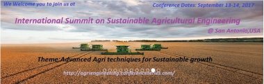 Conference Series LLC takes the privilege to invite speakers, participants, students, delegates and exhibitors from across the globe to its premier Agri Engineering 2017, to be held during Sep 14-15, 2017, in San Antonio, TX, USA. This revered conference will be focusing on the theme “Advanced Agri Techniques for Sustainable Growth”. Conference Series LLC organize 3000+ Global Conference series Events inclusive of 600+ Conferences, 1200+ Workshops and 1200+ Symposiums Every Year across the USA, Europe & Asia with support from 1000 more scientific societies and 50000 eminent personalities.