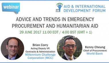 Join a conversation with the World Bank and Millennium Challenge Corporation on trends and advice in ‘Emergency Procurement and Humanitarian Aid’.