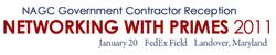 The National Association of Government Contractors and the Washington Redskins invite you to our annual networking reception Networking with Primes 2011 at FedEx Field in Landover, Maryland on January 20, 2011 at 6:30 p.m.