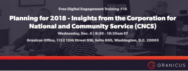 Explore areas for improvement to help drive future campaign and outcome success for your agency. Register now for a morning of key insights from the Corporation for National and Community Services on how to plan for the new year.