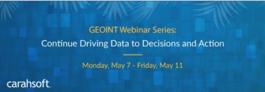 View Carahsoft's post-GEOINT on-demand webinar series to continue your agency's momentum from the 2018 GEOINT Symposium and learn more about the solutions that will help you meet agency initiatives! The series will consist of five, 30-minute sessions. Industry experts, like USGIF's CEO Keith Masback, and technology leaders from GEOINT's expo hall will expand on symposium discussions, elaborate on current challenges the geospatial community is facing, and present solutions that will keep this community moving forward.