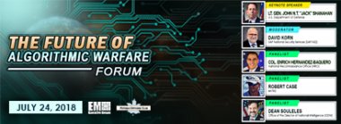 Join Potomac Officers Club to hear public and private sector leaders discuss AI and the future of algorithmic warfare. Keynote Lt. Gen. Jack Shanahan and the panel will discuss: Project MAVEN and actionable intelligence, future capabilities of AI/machine learning, optimizing clouds for algorithmic warfare and how industry can help.