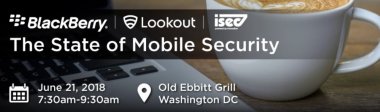 Join BlackBerry, Lookout, and ISEC7 at Old Ebbitt Grill in DC the morning of June 21st to hear a panel of mobile security experts discuss threats to the mobile ecosystem and what it takes to secure your mobile fleet.
