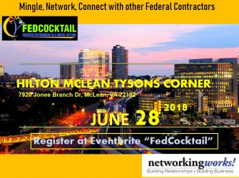 FEDCOCKTAIL Network was created to provide a forum for businesses and professionals engaged in providing goods and services to federal, state, and local county/municipalities. This forum allows attendees to spot teaming opportunities, meet with others who are engaged in similar practice and exchange core capabilities as attendees collaborate about their secrets to success.