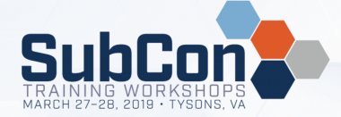 NCMA’s SubCon Training Workshops (SubCon) provides comprehensive subcontracts training led by experienced practitioners. Join 200+ industry procurement professionals and government buyers and program managers for two days of training in the format of your choice. Choose to spend a full day in a single-topic immersion workshop or four one and a half hour breakout sessions on multiple topics. This event is worth 12 CPE/CLP credits.