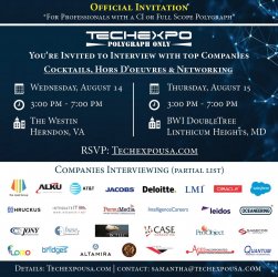 Interview for dozens of career opportunities at the upcoming TECHEXPO Polygraph-Only Hiring Events: