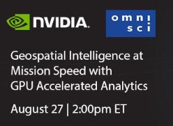 - Integrate the NVIDIA-supported RAPIDS platform into Python GEOINT analytics, for easy GPU acceleration of new use cases