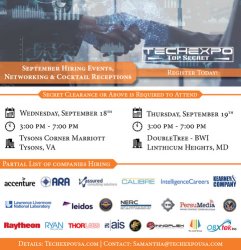 Interview for this job and dozens of other career opportunities at the upcoming TECHEXPO Top Secret Hiring Events: