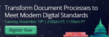 Join our complimentary webinar to learn how you can implement new paperless processes while improving CX across government agencies. From digitizing forms to enabling e-signature capabilities, Adobe Document Cloud (DC) is spearheading the revolution to modernizing existing, and furthermore outdated, document processes -- helping agencies to meet citizen and employee expectations while reducing costs and increase efficiencies!