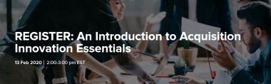 In Introduction to Acquisition Innovation Essentials, we will survey how agencies are procuring emerging technologies during an era where industry is out-investing government three to one. Join us for this free, hour-long webinar to learn how agencies are leveraging crowdsourcing, partnership intermediary agreements, prize challenges, other transaction authorities, and more.