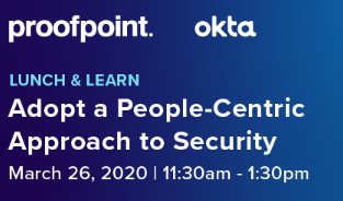 Join us on Thursday, 3/26 for a lunch and learn where we'll discuss how Okta + Proofpoint safeguard the enterprise against attacks with advanced threat detection and automated remediation allowing you to: