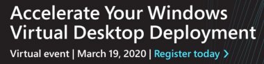 Find out how to accelerate your move to the cloud with Windows Virtual Desktop. Register for this virtual event and learn how to get started quickly and securely with new Windows Virtual Desktop features that simplify the deployment and experience of desktop and app virtualization on Azure.