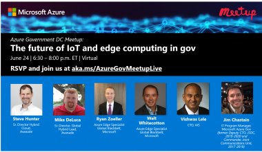 To gain insights on the latest IoT and edge computing solutions transforming government, we invite you to RSVP and join us for a virtual Microsoft Azure Government DC meetup, The future of IoT and edge computing in gov, Wednesday, June 24, 6:30-8 p.m. ET.