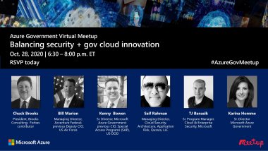 In support of National Cybersecurity Awareness Month, we invite you to register and join us for a virtual Azure Government Meetup, “Balancing security + gov cloud innovation,” via Teams Live Event.