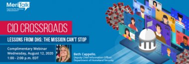 Tune in on Wednesday, August 12 at 1:00 p.m. EDT for a complimentary webinar to hear from DHS’ Deputy CIO Beth Cappello, who will share insights on the value of smart modernization steps and laying the groundwork to meet COVID-19 challenges, as well as take a deep dive look into DHS’ greatest lesson learned during the pandemic: the mission can’t stop.