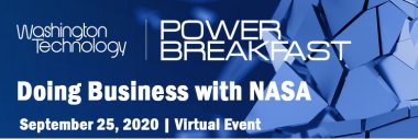 In this Washington Technology Power Breakfast, we’ll hear from leading NASA executives and other knowledgeable sources who will explain the drivers and trends shaping NASA’s landscape as well as what they expect from their contractor community.