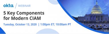 Join us for a live webinar on October 13th and learn how agencies are modernizing their approach by implementing a cloud-based identity solution, delivering agility, flexibility, speed to market, and scalability. We will also walk through 5 key capabilities of a modern CIAM solution: