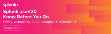 Splunk .conf is the premier education event for thousands of IT, security, and business professionals looking to bring data to every question, decision, and action. Splunk .conf is typically Splunk's marquee annual user conference, where customers and users from across the globe can meet, network, and learn Splunk best practices and product updates all in one fun-filled week! Splunk .conf20 was virtual this year, making the event more accessible and completely free to attend.