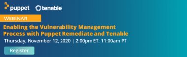 Join Puppet, Tenable, and Carahsoft on November 12th as we discuss how the Puppet Remediate integration with Tenable helps IT organizations mitigate security risks, enabling them to quickly and efficiently reduce the number of vulnerabilities in their infrastructure and create a more efficient vulnerability management process.