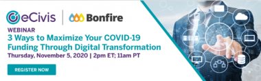 In this complimentary webinar, hear from eCivis, the leader in cloud-based grants management, and Bonfire, the leader in sourcing and procurement software, as they join forces to share 3 ways governments can maximize their COVID-19 related funding to future-proof their grants and procurement processes.