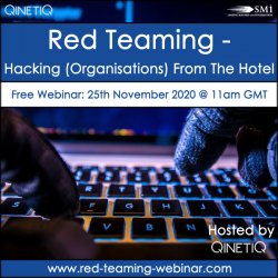 QinetiQ will be hosting a FREE webinar on "Red Teaming - Hacking (Organizations) From The Hotel," taking place at 11am GMT on 25th November 2020.