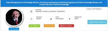 In many organizations, the business depends on specialized knowledge of engineering, research and development, or professional knowledge such as medical, legal, or IT. Yet too many organizations focus most attention on preparing people for vertical promotions (up the organization chart) rather than for horizontal promotions (across the continuum of technical expertise tied to a dual career ladder). In many cases, the organization’s engineers or other technical workers are nearing retirement and nothing has been done to prepare the organization for mass exits of critical competitive knowledge of the business, work processes, customers, and other such valuable explicit knowledge. This session focuses on what is needed to gear talent management to knowledge workers.
