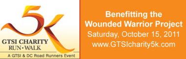 The GTSI Charity 5K Run/Walk will be held on Saturday, October 15, 2011. This charity race will benefit the Wounded Warrior Project and is a community race organized in partnership with GTSI, corporate sponsors and the DC Road Runners Club. The goal of this event is to honor the daily sacrifices made by the brave men and women in all branches of the United States military and raise awareness for the Wounded Warrior Project charity.