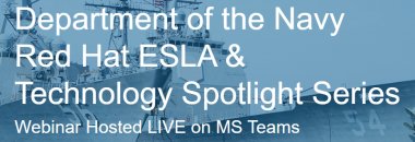 Join us each month for a Department of the Navy Red Hat Enterprise Software License Agreement (ESLA) and Technology Spotlight LIVE webinar hosted on MS Teams.
