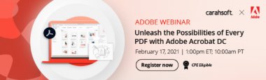 As remote work has become the norm, agencies across the nation have adopted PDFs at a faster pace than ever before. Adobe is helping the public sector to stay connected with simple workflows across desktop, mobile, and web - for productivity that knows no limitations - with Adobe Acrobat Document Cloud (DC), the complete multi-device PDF solution for streamlined document and e-signature processes.
