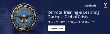 Join our complimentary webinar to hear Adobe's DoD eLearning experts share the three key takeaways Learning & Development teams learned during the global crisis.