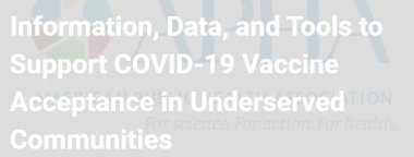 Information, Data, and Tools to Support COVID-19 Vaccine Acceptance in Underserved Communities