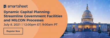 Join Smartsheet, Sevan Solutions, and Carahsoft to learn how Smartsheet’s pre-built solutions and simplified reporting, combined with the innovative offerings of Sevan Solutions, can bring faster, smarter, more data-driven decision making to your capital planning process.