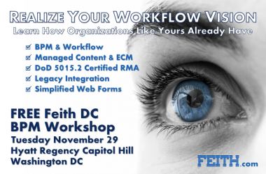 Join industry-leader Feith Systems in DC on November 29th for a one-day-only exclusive FREE Workflow & BPM Workshop and Seminar.