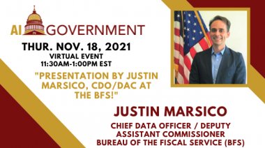 November 2021 AI in Government Presentation by Justin Marsico, Chief Data Officer / Deputy Assistant Commissioner at the Bureau of the Fiscal Service (BFS)