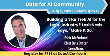 This month's special featured guest is Rick McFarland, Chief Data Officer at LexisNexis! Star Trek’s technology seemed far-fetched in the 60s, especially the all-knowing “computer” that provided verbal answers to every one of Captain Kirk’s questions. Today, we have Siri and Alexa, but too often these “consumer grade” digital assistants can’t understand technical questions let alone deliver answers other than defaulting to “I found this in Wikipedia.” Rick McFarland, Chief Data Officer at LexisNexis, will explain how the company is pushing the boundaries of modernizing search technologies to create an AI-driven, “professional grade” legal Q&A platform that understands context and intent – and even speaks “legalese.” Join Rick to learn more about LexisNexis’ five-year mission to boldly go where no AI has gone before – to deliver the best possible answers to a broad range of legal questions and help attorneys make better decisions.