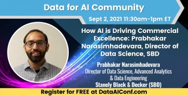 September 2, 2021 Data For AI: How AI is Driving Commercial Excellence with Prabhakar Narasimhadevara, Dir, Data Science, SBD