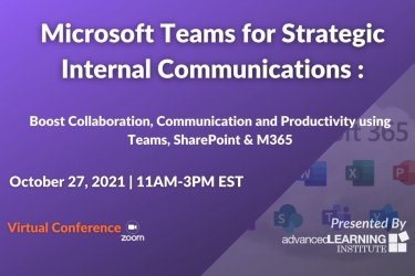 While chances are your work environment has changed greatly in the past year, Microsoft tools will allow you to remain effective and create an integrated work environment for all of your internal communications needs. Microsoft SharePoint & Teams demonstrations will be provided by your internal communications peers as they navigate this new normal.