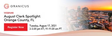 Join Granicus online for a complimentary, 20-minute webinar, for August's Clerk Spotlight showcasing Katie Smith, Deputy Clerk, Orange County, Florida.