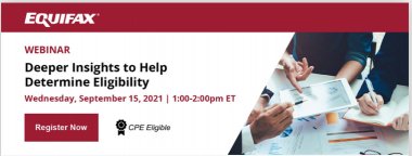 This complimentary webinar discusses how Equifax provides a more complete picture through optional add-on data sources such as IRS Income Verification, Property Verification, and Verification of Education that can be delivered along with The Work Number® database.