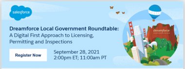 Join our upcoming roundtable discussion to hear how State and Local government leaders are leveraging the Salesforce solution to enable effective citizen self-service, streamline back-end processes, and increase efficiencies of the end-to-end licensing, permitting and inspections (LPI) process.