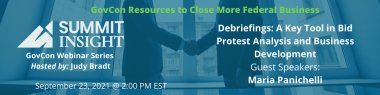 Debriefings are one of the most important tools in a federal contractor’s toolbox. First and foremost, they are the primary way a contractor can find out – whether a contract awardee or an unsuccessful offeror – how to improve their future proposal efforts. In addition, debriefings are a useful and often mandatory step in the bid protest process. But many contractors have serious misconceptions regarding debriefings, when to use them, what information you do and do not get, and how debriefings can impact the bid protest process. In this webinar, experienced government contracting attorney Maria Panichelli will clear up all those misconceptions and providing a basic primer on how to use debriefings to your advantage.