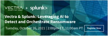 Join our National Security DIB/FSI teams for a webinar on an orchestrated detection and response capability for ransomware, insider threat, and nation-state attacks. While a current hot-button in the cyber community, the relevance and impacts to your organization's mission and support for our federal government are greater than ever. This will be an interactive demonstration and discussion between you and the security architects from Vectra and Splunk.